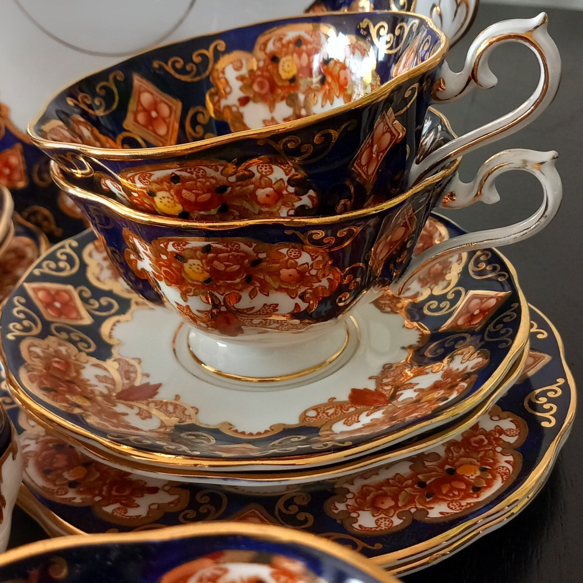 Verwen je gasten met dit prachtige Heirloom servies. Dit servies heeft prachtige oud Engelse motieven met heel veel gouden details en prachtige rood, bruin en donkerblauwe kleuren.